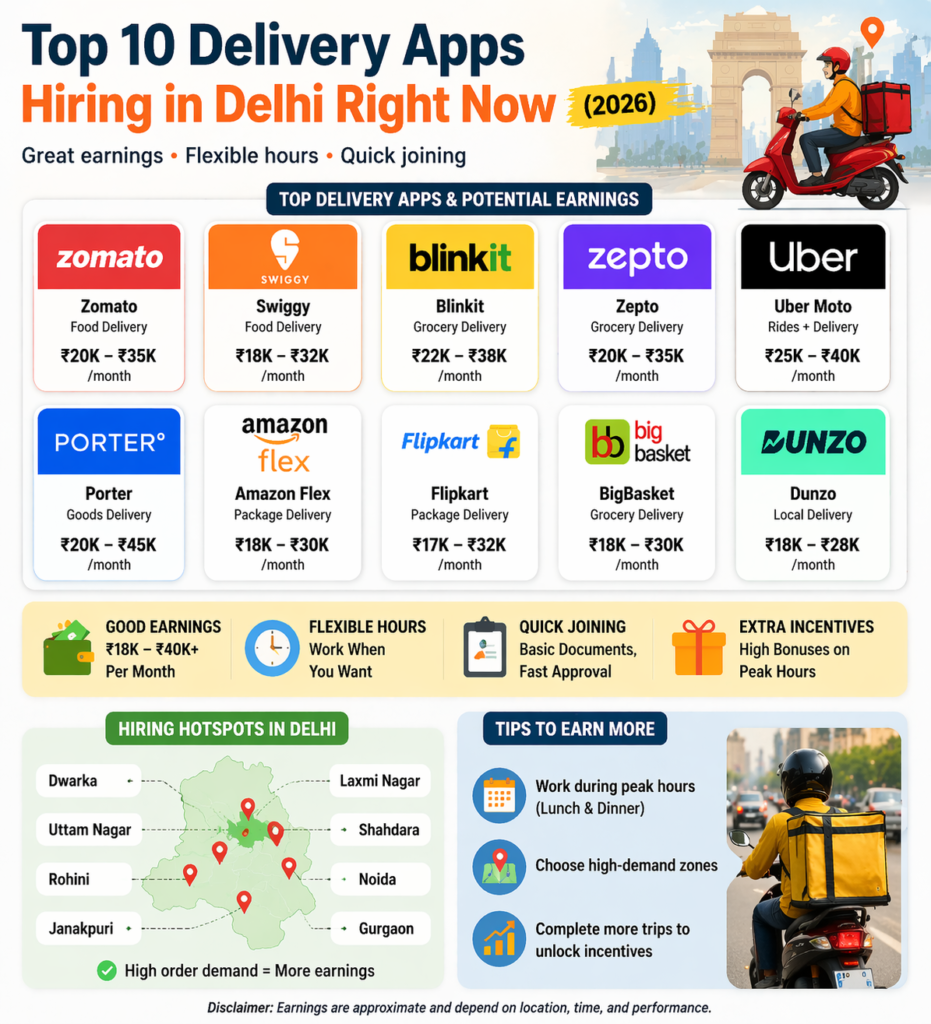 Looking for Delivery Jobs in Delhi in 2026? Here Are the Best Apps Hiring Right Now